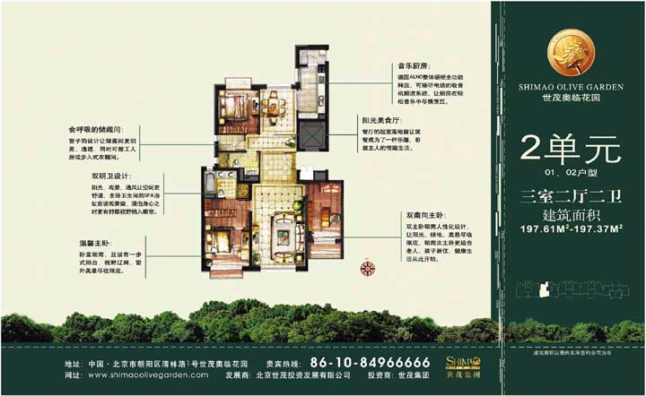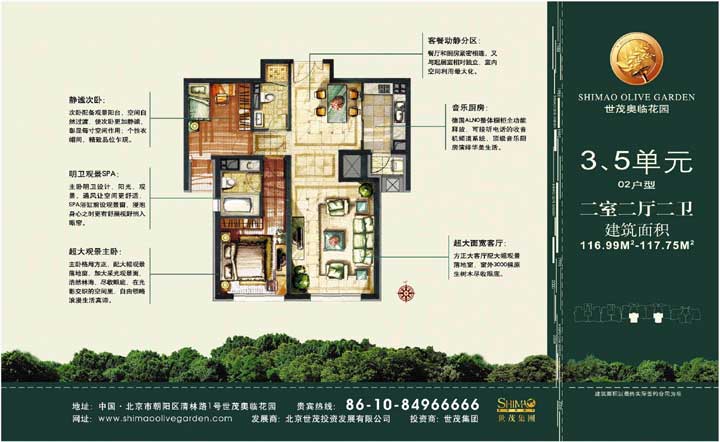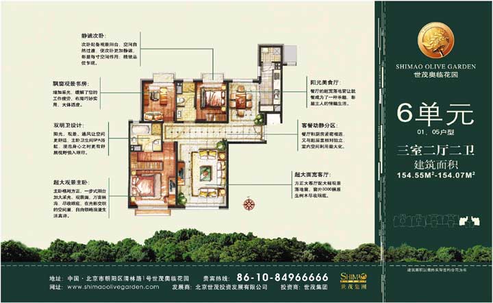 Shimao Olive Garden is situated to the north of the Olympic Forest Park, the north end of Beijing axle line. There are infinite mountain ranges to the north, while the south provides the view of the national Olympic Forest Park. Residents will be able to enjoy a bird-eye view of Olympic stadiums and Olympic torch.